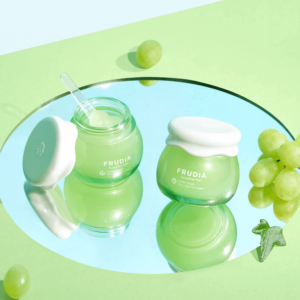 La FRUDIA Green Grape Pore Control Cream 10 g est une crème visage formulée pour hydrater la peau tout en aidant à resserrer les pores. Sa texture légère et fraîche pénètre facilement sans effet gras, apportant confort et équilibre. Enrichie en extrait de raisin vert, elle contribue à réguler l’excès de sébum et à améliorer l’apparence du grain de peau.