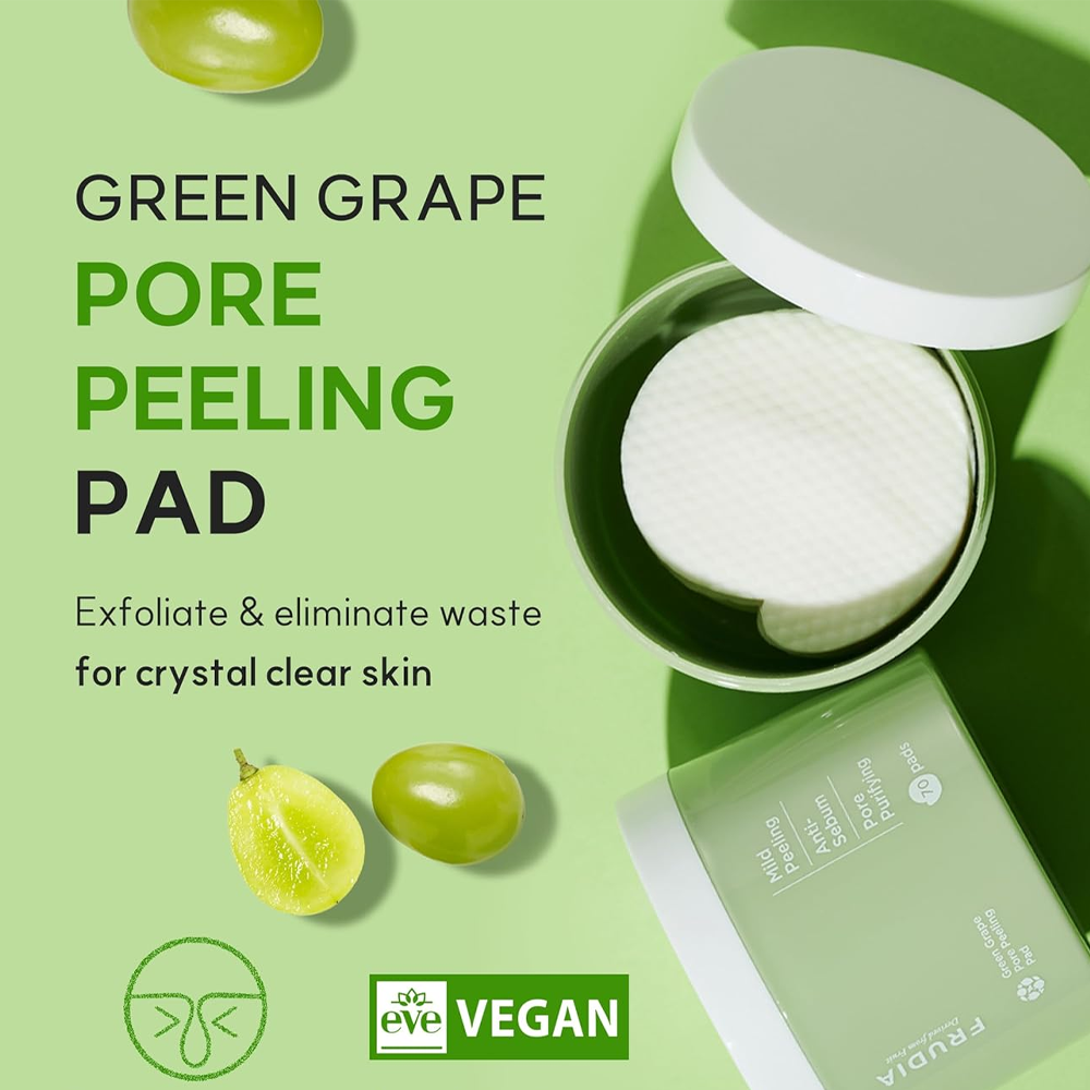 Le FRUDIA Green Grape Pore Peeling Pad est un soin exfoliant sous forme de disques imprégnés, conçu pour purifier la peau et affiner le grain de peau. Il aide à éliminer les cellules mortes, réduire l’excès de sébum et améliorer l’apparence des pores. Pratique et facile à utiliser, il laisse la peau plus lisse, nette et fraîche.