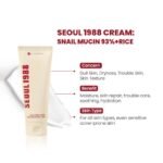 La K-Secret Seoul 1988 Cream Snail Mucin 93% + Rice est une crème hydratante conçue pour nourrir la peau, améliorer son élasticité et renforcer la barrière cutanée. Sa formule riche en mucine d’escargot aide à réparer la peau, maintenir l’hydratation et améliorer la texture du teint.